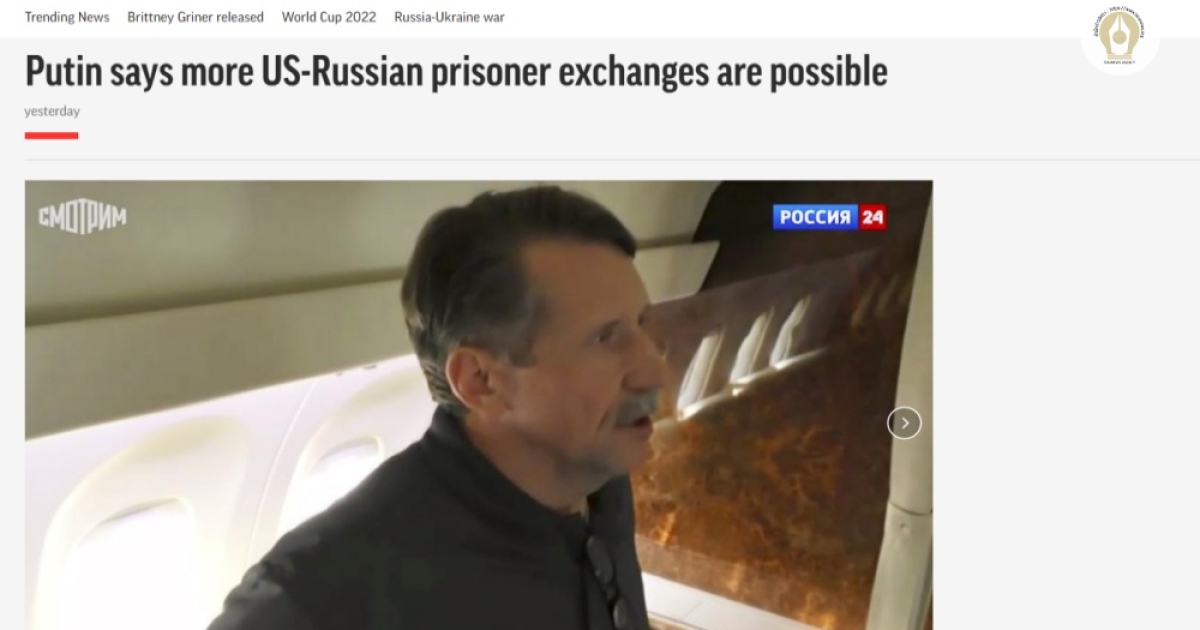 สำนักข่าวอิศรา (www.isranews.org) รายงานข่าวสถานการณ์ในค่างประเทศว่านายวลาดิเมียร์ ปูติน ประธานาธิบดีรัสเซียได้ออกมาให้สัมภาษณ์ในระหว่างการประชุมสุดยอดในคีร์กีซสถานเมื่อวันที่ 9 ธ.ค.ว่า มีความเป็นไปได้ว่าในอนาคตอาจจะมีการแลกเปลี่ยนนักโทษกันระหว่างสหรัฐอเมริกาและรัสเซียเพิ่มเติมอีก ถ้าหากว่าทางกรุงมอสโกและกรุงวอชิงตันสามารถหาจุดที่ประนีประนอมได้