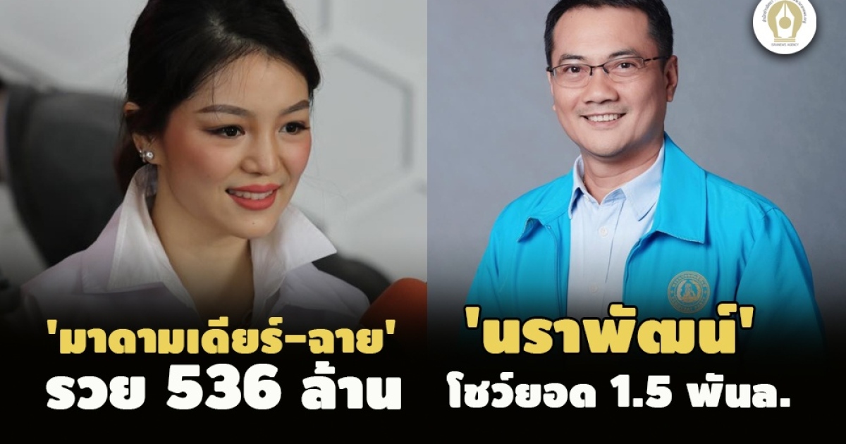 ป.ป.ช. เปิดบัญชีทรัพย์สิน 2 อดีต ส.ส. 'มาดามเดียร์-ฉาย บุนนาค' รวย 536 ล้าน หนี้ 126 ล้าน เพิ่มหลังพ้น ส.ส. 44 ล้าน ส่วน 'นราพัฒน์' โชว์ยอดทรัพย์สิน 1.5 พันล้าน แต่แจ้งรายละเอียด 206 ล้าน รวยขึ้น 8 ล้าน หลังเป็น ส.ส. 3 เดือน
