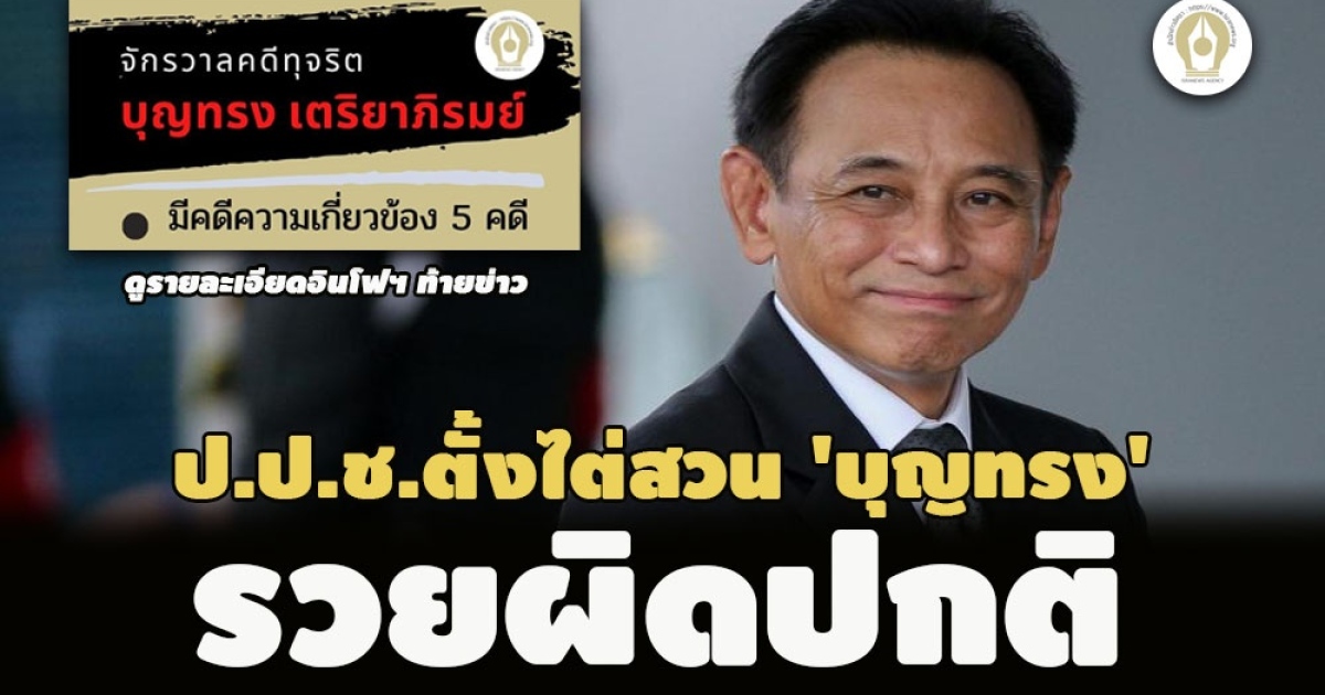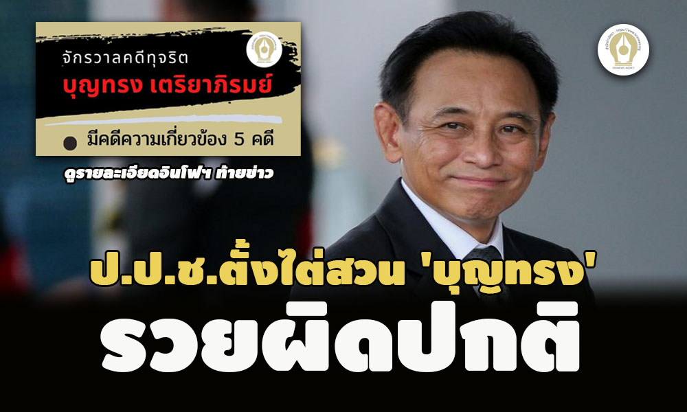 เผยมติคณะกรรมการ ป.ป.ช. ตั้งไต่สวนคดีใหม่ 'บุญทรง เตริยาภิรมย์' คราวนี้ ร่ำรวยผิดปกติ กรณีพ้นจากตำแหน่ง รมว.พาณิชย์ ยุครัฐบาล ยิ่งลักษณ์ หลังตรวจสอบพบคนใกล้ชิดเป็นเครือญาติถือแทนอย่างน้อย 4 ราย - นับรวมยอดปัจจุบันโดนไปแล้วกว่า 5 คดี