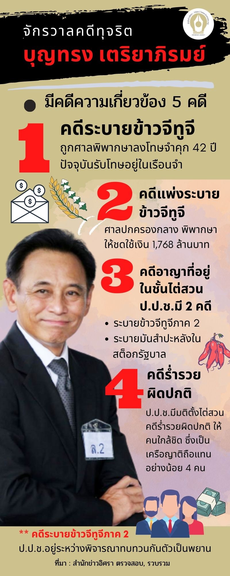 (ดูรายละเอียดภาพรวมจักรวาลคดีทุจริต นายบุญทรง ในอินโฟกราฟิก ด้านล่างนี้