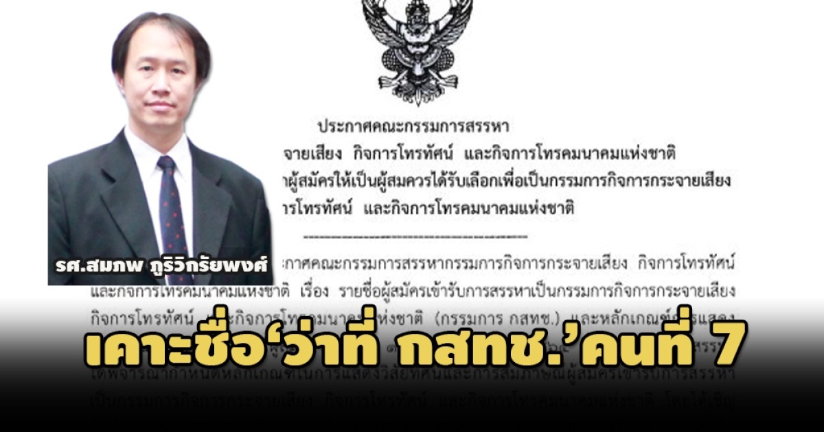 ‘บอร์ดสรรหาฯ’ เลือก ‘รศ.สมภพ ภูริวิกรัยพงศ์’ เป็น ‘ว่าที่ กสทช.’ ด้านกิจการโทรคมนาคม เตรียมเสนอ ‘วุฒิสภา’ โหวตอีกครั้ง