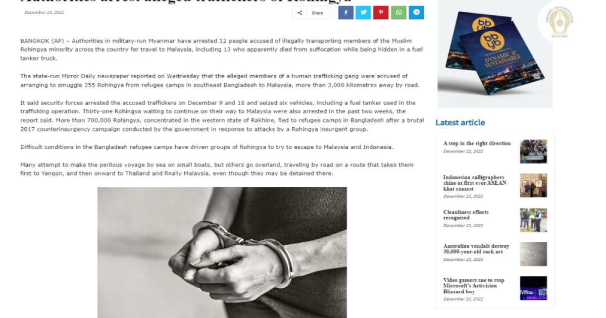เรียบเรียงจาก:https://borneobulletin.com.bn/authorities-arrest-alleged-traffickers-of-rohingya/
