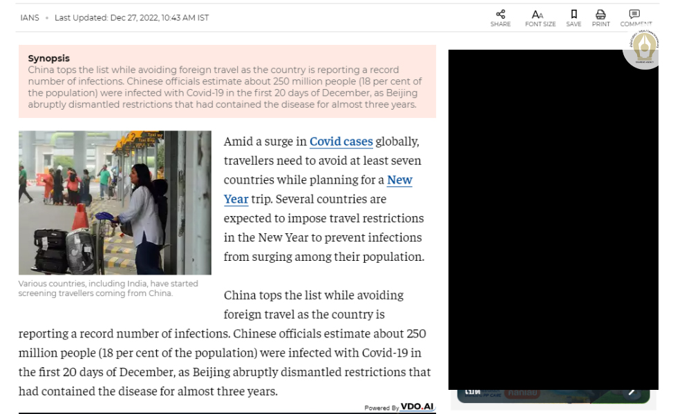 สำนักข่าวอิศรา (www.isranews.org) รายงานอ้างอิงข้อมูลจากสื่อในอินเดียในหลายสำนักว่าได้มีการออกบทความเตือนให้ทักท่องเที่ยวหลีกเลี่ยงการเดินทางท่องเที่ยวช่วงปีใหม่ใน 7 ประเทศด้วยกัน ซึ่งทั้ง 7 ปะเทศที่ว่านี้ยังคงมีสถานการณ์การระบาดของไวรัสโควิด-19 อยู่ เพื่อเป็นการป้องกันไม่ให้เกิดการพุ่งขึ้นของผู้ติดเชื้อโควิด-19