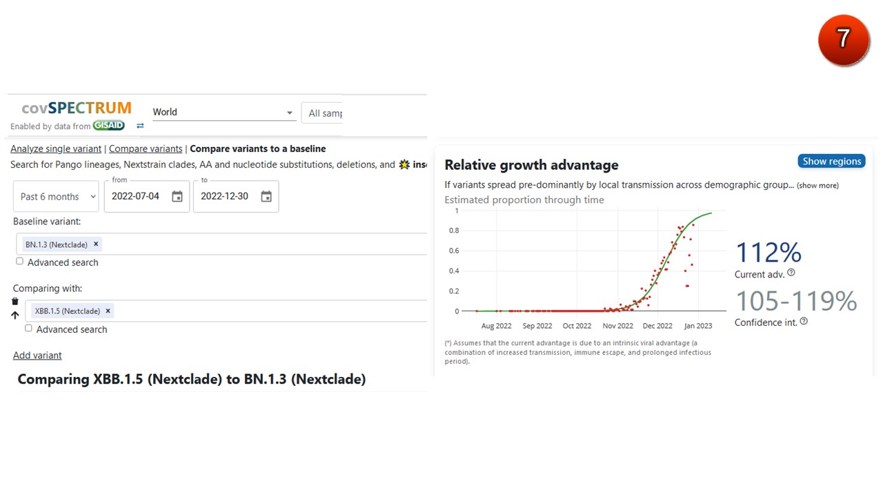 เห็นได้ชัดว่าขณะนี้ในประเทศจีนระบาดด้วยสายพันธุ์ BA.5.2 สายพันธุ์นี้ได้ระบาดผ่านพ้นไปแล้วในประเทศไทย ในประเทศไทยขณะนี้เป็นสายพันธุ์ BA.2.75 ตามหลังประเทศอเมริกา ในอเมริกาเองขณะนี้ระบาดเป็นสายพันธุ์ BQ1.1 ซึ่งจะต้องเฝ้าระวังในประเทศไทยต่อไป และในขณะนี้สายพันธุ์ที่อยู่ในตะวันตกและอเมริกา ที่น่าเป็นห่วงอย่างยิ่งคือสายพันธุ์ XBB.1.5 เป็นสายพันธุ์ที่จะระบาดต่อจาก BQ และแพร่กระจายได้ง่าย รวมทั้งหลบหลีกภูมิต้านทาน ที่จะระบาดได้เร็วที่กำลังพบเพิ่มขึ้นในอเมริกา และคาดว่าจะเข้ามาแทนที่ในตัวต่อไป