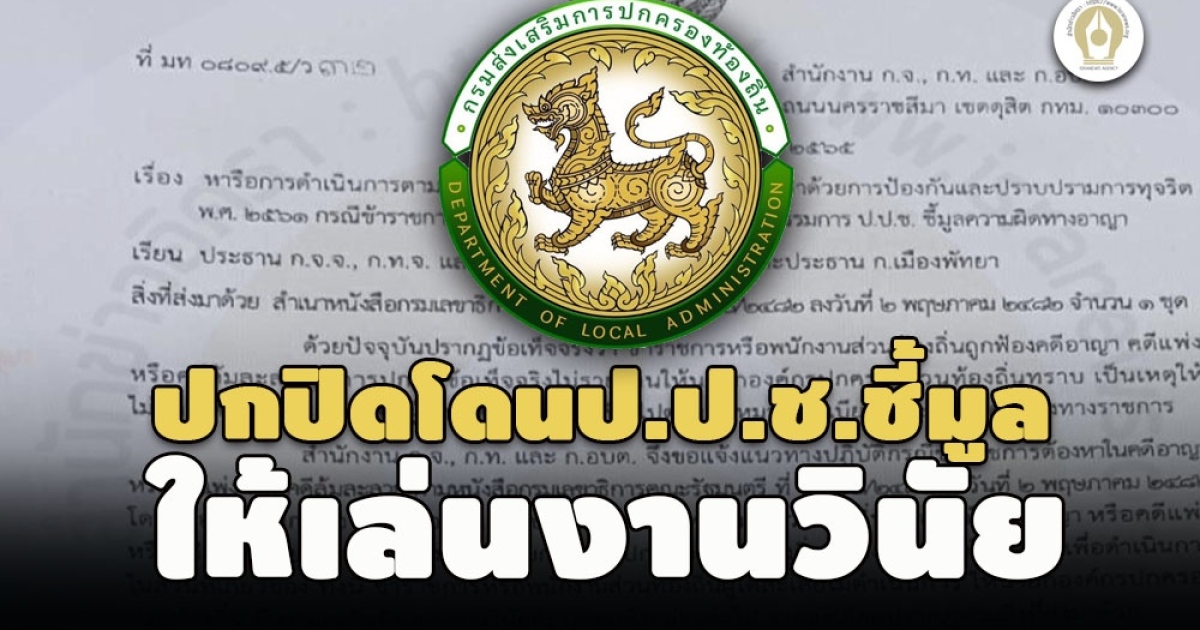 สถ.ทำหนังสือแจ้งเวียน ก.จ.จ., ก.ท.จ. ,ก.อบต.จังหวัด ทั่วปท. แนวปฏิบัติ กรณี ขรก.โดนป.ป.ช.ชี้มูลอาญา รวมคดีแพ่ง-ล้มละลาย ไม่รายงานผู้บริหารต้นสังกัดทราบให้ดำเนินการทางวินัย- หลังพบมีการปกปิดข้อมูลเป็นเหตุให้ไม่มีการดำเนินการตามขั้นตอนกฎหมายระเบียบราชการ