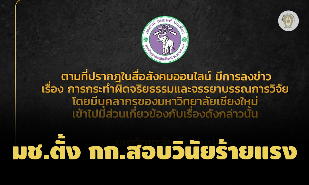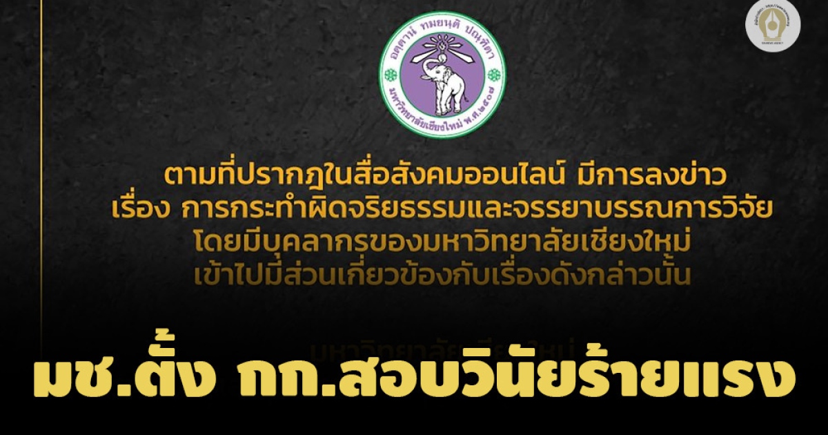 มช.ตั้งกรรมการสอบสวนวินัยร้ายแรง ปมนักวิชาการจ่ายเงินซื้องานวิจัยใส่ชื่อเป็นผลงานตัวเอง อว.ชี้ผิดจริยธรรมร้ายแรง