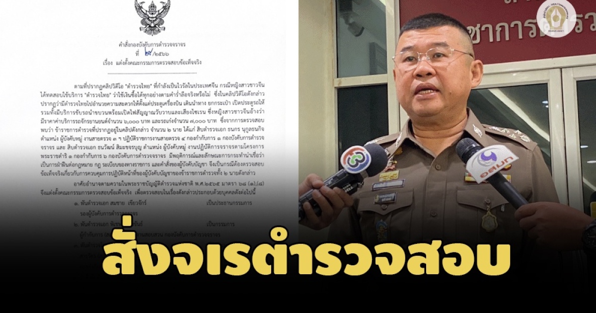 ผบ.ตร.สั่งจเรตำรวจตรวจสอบ ปมคลิป 2 ตำรวจอำนวยความสะดวกนักท่องเที่ยวจีนแล้ว เผยคำสั่ง ตั้ง กก.สอบ ผู้บังคับบัญชาด้วย
