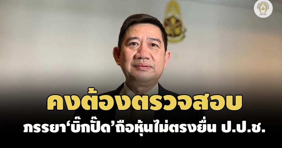 เลขา ป.ป.ช.เผยคงต้องตรวจสอบ ปมภรรยา 'สุวัฒน์' ถือหุ้น บ.เอ็ม บัส ใน บอจ.5 ไม่ตรงแจ้งบัญชีทรัพย์สิน ชี้มีปัญหาหากมีหุ้น 7 หมื่นแต่มาแจ้งแค่ 2,500 ต้องดูเอาเงินจากไหนไปซื้อหุ้น ทรัพย์สินลดตรงไหนหรือไม่