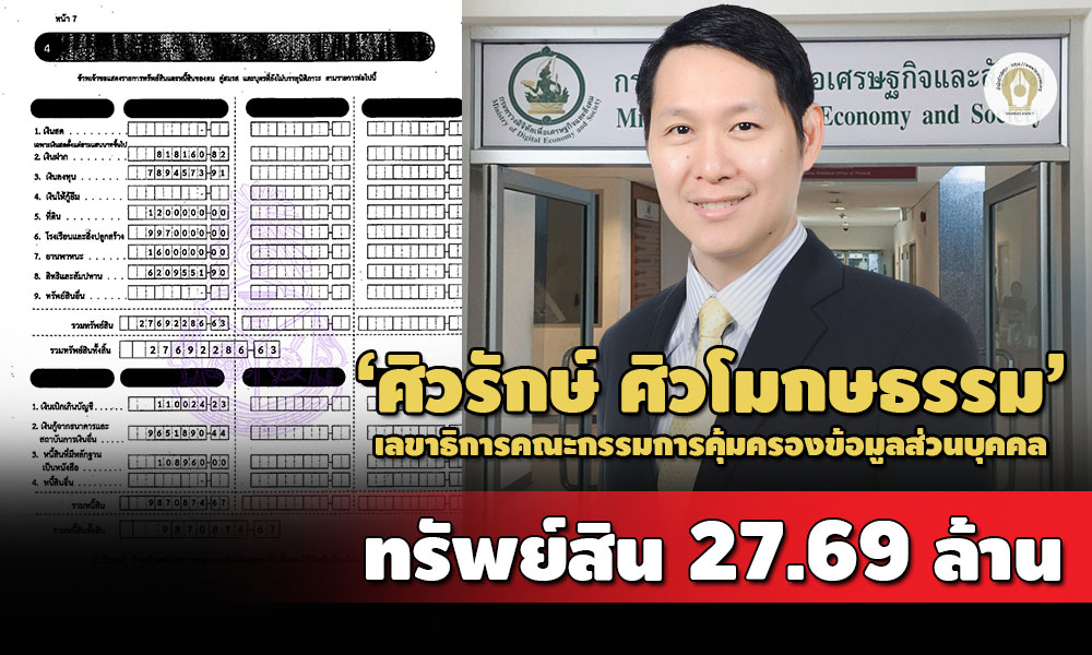 ป.ป.ช. เปิดบัญชีทรัพย์สิน 'ศิวรักษ์ ศิวโมกษธรรม' เลขาธิการคณะกรรมการคุ้มครองข้อมูลส่วนบุคคล มีทรัพย์สินรวมกว่า 27 ล้าน ลงทุนเพียบ รายได้ 2.4 ล้านต่อปี