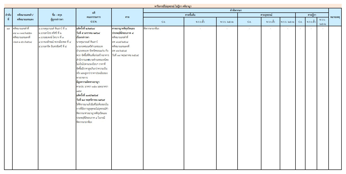 ล่าสุด เมื่อวันที่ 19 พฤษภาคม 2565 ศาลอาญาคดีทุจริตและประพฤติมิชอบภาค 4 มีคำพิพากษายกฟ้อง