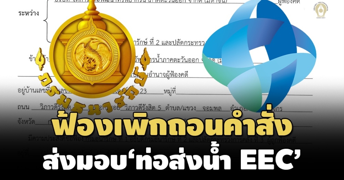 ‘อีสท์วอเตอร์’ ฟ้อง ‘ศาลปกครองกลาง’ ขอให้เพิกถอนคำสั่ง ‘กรมธนารักษ์’ ที่แจ้งให้ ‘EASTW’ ส่งมอบทรัพย์สินท่อส่งน้ำ ‘อีอีซี’ 2 ท่อ ‘หนองปลาไหล-หนองค้อ’ และ ‘หนองค้อ-แหลมฉบัง (ระยะที่ 2)’ อ้างเป็นคำสั่งที่มิชอบด้วยกฎหมาย