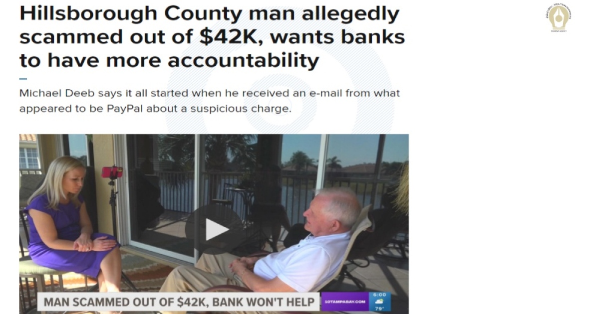 โดยสำนักข่าว 10 Tempa Bay ซึ่งเป็นสำนักข่าวท้องถิ่นในรัฐฟลอริดา ประเทศสหรัฐอเมริกาได้รายงานข่าวกรณีนายไมเคิล ดีบ อดีตอาจารย์สอนประวัติศาสตร์สหรัฐฯ ในวัย87 ปี ซึ่งอาศัยอยู่ในเทศมณฑลฮิลส์โบโรห์ ถูกฉ้อโกงโดยใช้กระบวนการอีเมล์เพย์พาล (PayPal) ก่อนที่มิจฉาชีพจะสามารถหลอกให้นายดีบโอนเงินไปได้เป็นจำนวน 42,000 ดอลลาร์สหรัฐฯ (1,443,540 บาท) ซึ่งจากการติดตามเส้นสทางการเงินพบว่าเงินนั้นถูกโอนไปยังประเทศไทย ขณะที่นายดีบกล่าวว่าเขาอาจจะไม่ได้เงินจำนวนนี้คืน