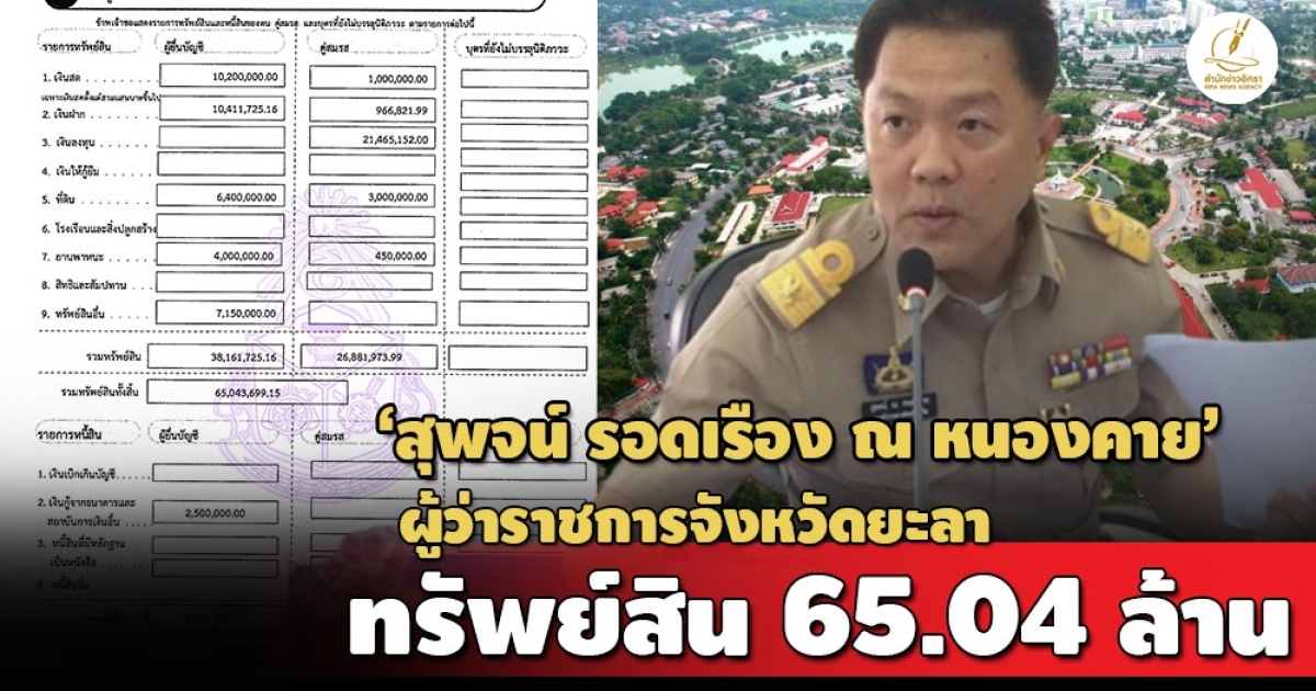 ป.ป.ช. เปิดบัญชีทรัพย์สิน 'สุพจน์ รอดเรือง ณ หนองคาย' ผู้ว่าราชการจังหวัดยะลา ทรัพย์สิน 65 ล้าน สะสมปืน-ทองรูปพรรณ-พระเครื่อง-นาฬิกาหรู