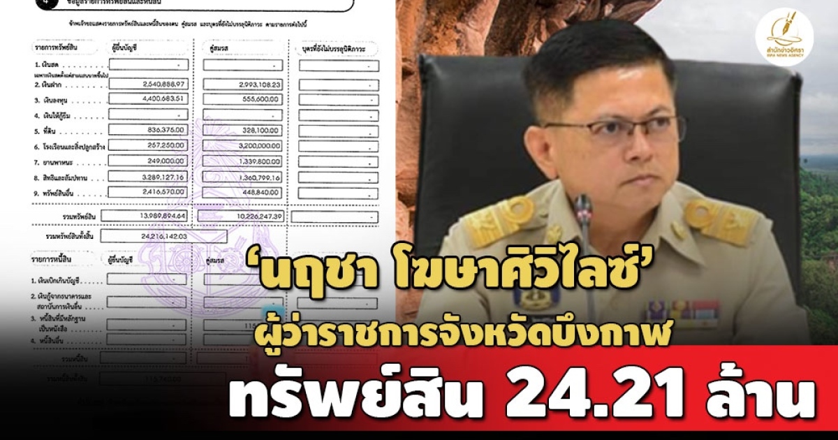 ป.ป.ช. เปิดบัญชีทรัพย์สิน 'นฤชา โฆษาศิวิไลซ์' ผู้ว่าราชการจังหวัดบึงกาฬ ทรัพย์สิน 24 ล้าน สะสมปืน-สร้อยคอทองคำ-พระเครื่อง/เหรียญพระบูชา-นาฬิกาหรู