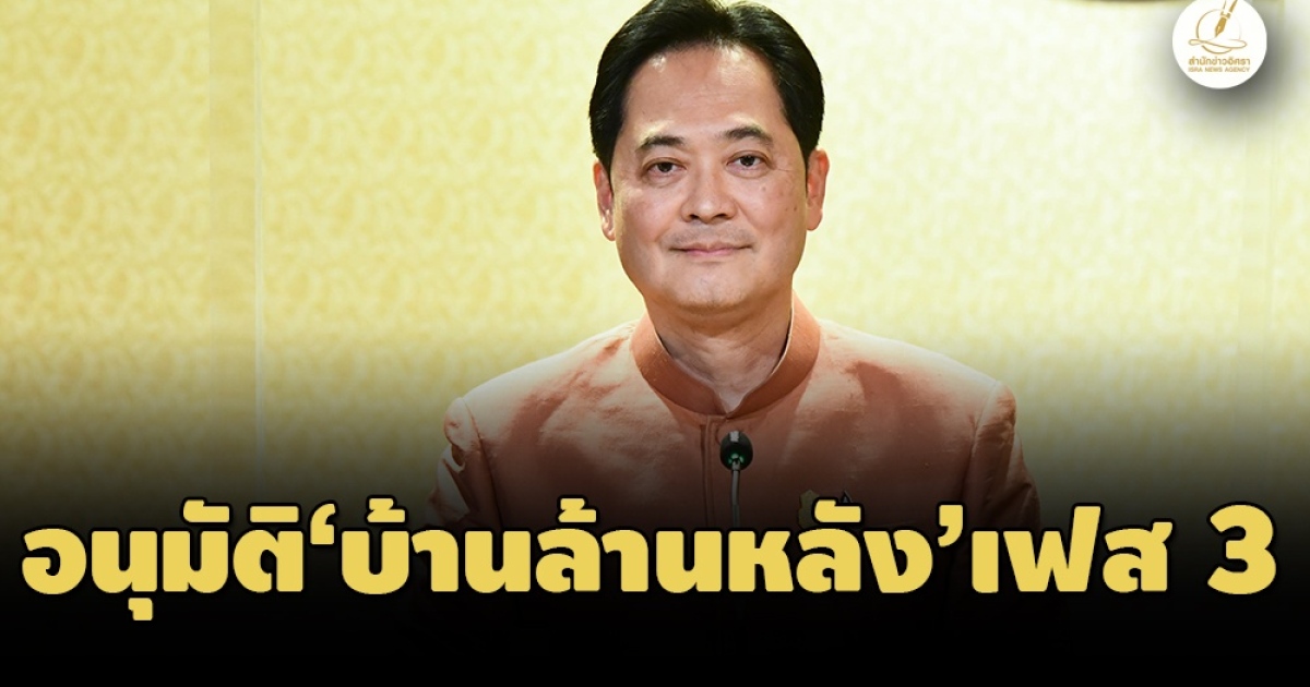 ครม.เห็นชอบโครงการ ‘บ้านล้านหลัง’ ระยะที่ 3 หนุน ‘ผู้มีรายได้น้อย-กลุ่มวัยทำงาน’ ซื้อที่อยู่อาศัยราคาไม่เกิน 1.5 ล้านบาท พร้อมอนุมัติงบ 2.1 พันล้านชดเชย 'ส่วนต่างดอกเบี้ย'