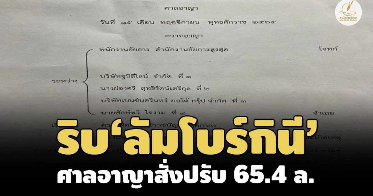 - ยกคำพิพากษาคดี ‘เฟอร์รารี่’ บ.ศรณรงค์ฯ เทียบ! ควรริบ ‘ลัมโบร์กินี’ บ.จูบิลี่ไลน์