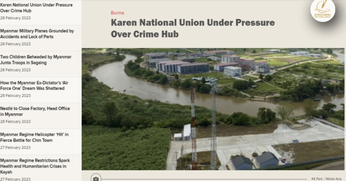 สำนักข่าวอิศรา (www.isranews.org) รายงานข่าวเกี่ยวกับสถานการณ์ชายแดนไทย-เมียนมา ที่มีผลกระทบต่อประเทศไทยว่า องค์กรกะเหรี่ยงหลายแห่งกำลังเร่งสอบถามถึงกรณีความเกี่ยวข้องของกองกำลังสหภาพแห่งชาติกะเหรี่ยง (KNU) ว่ามีส่วนเกี่ยวข้องกับโครงการของประเทศจีนในเมืองเมียวดี รัฐกะเหรี่ยงที่อยู่ตรงพรมแดนไทยหรือไม่ ซึ่งโครงการของจีนดังกล่าวนั้นพบว่ากลายเป็นศูรย์รวมของการค้ามนุษย์และการฉ้อโกงออนไลน์ในภูมิภาคเอเชียตะวันออกเฉียงใต้หรือว่าอาเซียน