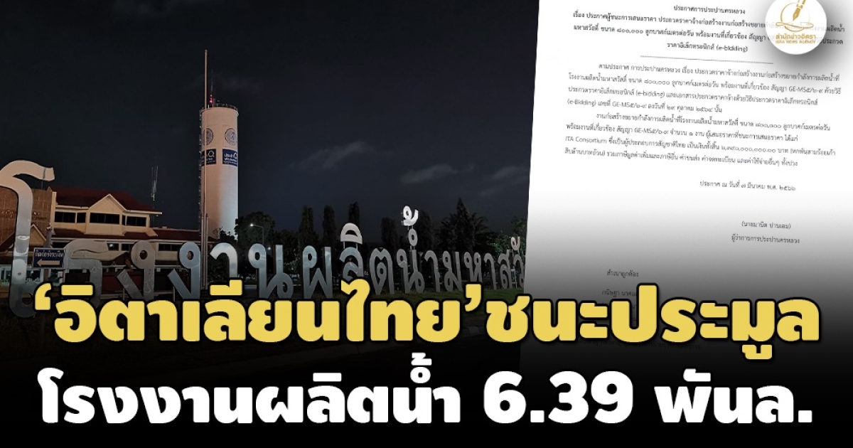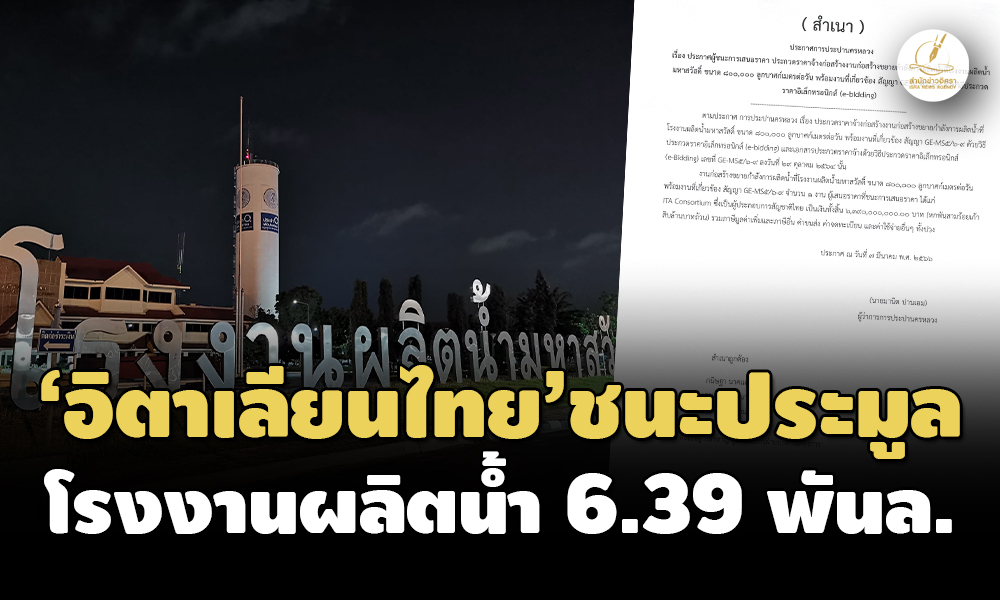 ‘กปน.’ ประกาศ ‘ITA Consortium’ ชนะประมูลงานขยาย 'โรงงานผลิตน้ำมหาสวัสดิ์ฯ' ที่ราคา 6,390 ล้านบาท แพงกว่า ‘วงษ์สยามก่อสร้างฯ’ 240 ล้านบาท หลังมีการยื่นเอกสารไม่ครบ ด้าน 'ผู้บริหารวงษ์สยามฯ' จ่อยื่นอุทธรณ์ ‘กรมบัญชีกลาง’