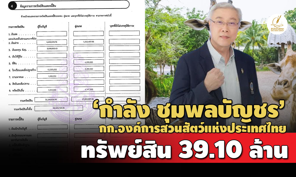ป.ป.ช. เปิดบัญชีทรัพย์สิน 'กำลัง ชุมพลบัญชร' กรณีเข้ารับตำแหน่งกรรมการองค์การสวนสัตว์แห่งประเทศไทย ทรัพย์สินกว่า 39 ล้าน สะสมสร้อยคอทองคำ-เครื่องประดับทองคำ-พระ เปิดตึกแถวให้เช่า รายได้ 2.4 ล้านต่อปี
