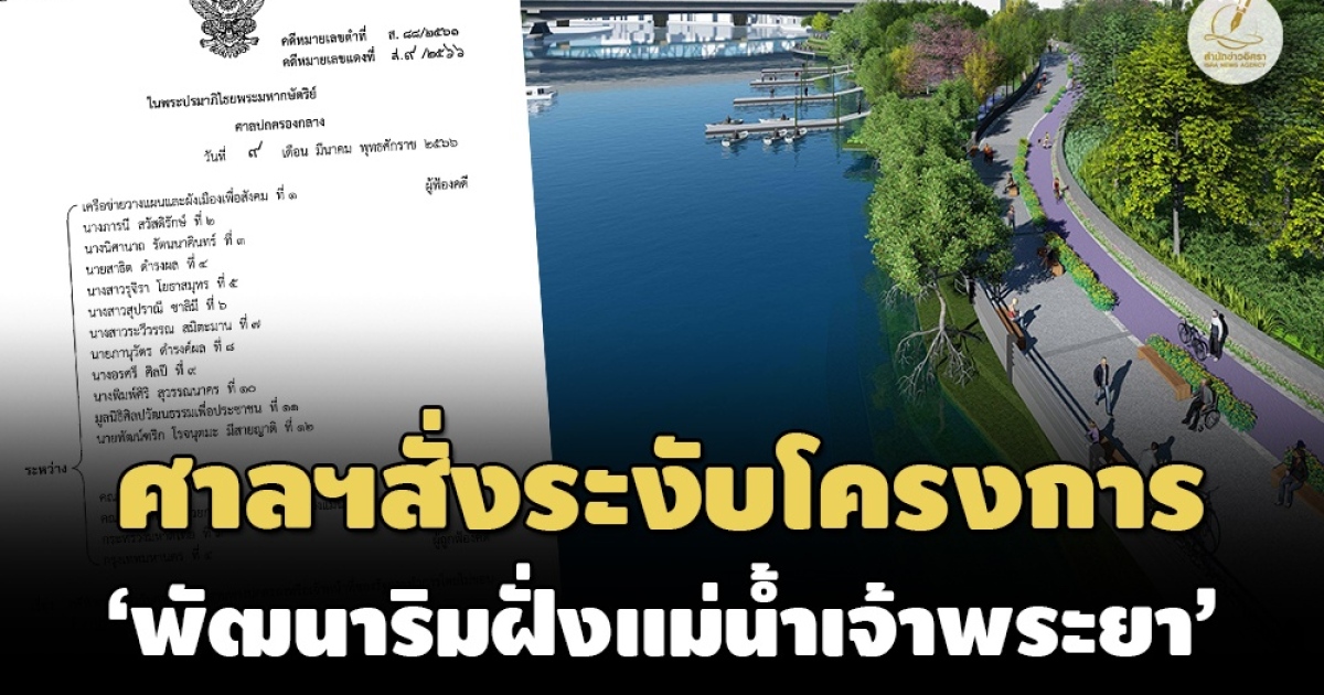 ‘ศาลปกครองกลาง’ สั่ง ‘ครม.-พวก’ ระงับ ‘โครงการพัฒนาริมฝั่งแม่น้ำเจ้าพระยา’ มูลค่า 1.4 หมื่นล้าน เหตุมีการกระทำที่ไม่ชอบด้วยกฎหมาย