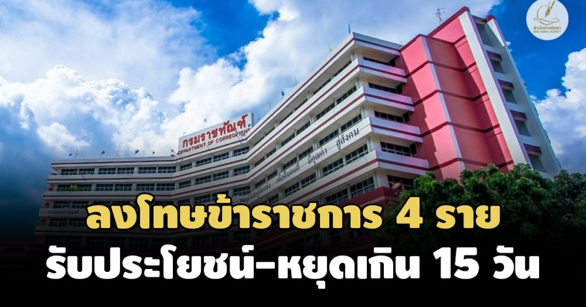 ‘ราชทัณฑ์’ เผยที่ประชุมอนุกรรมการสามัญฯ มีมติลงโทษข้าราชการ 4 รายทั้งไล่ออก-ให้ออกจากราชการ ฐานสมคบวางแผนให้ผู้ต้องขังหลบหนี, นำยาเส้นเข้าที่คุมขังแลกผลประโยชน์ และขาดงานเกิน 15 วัน