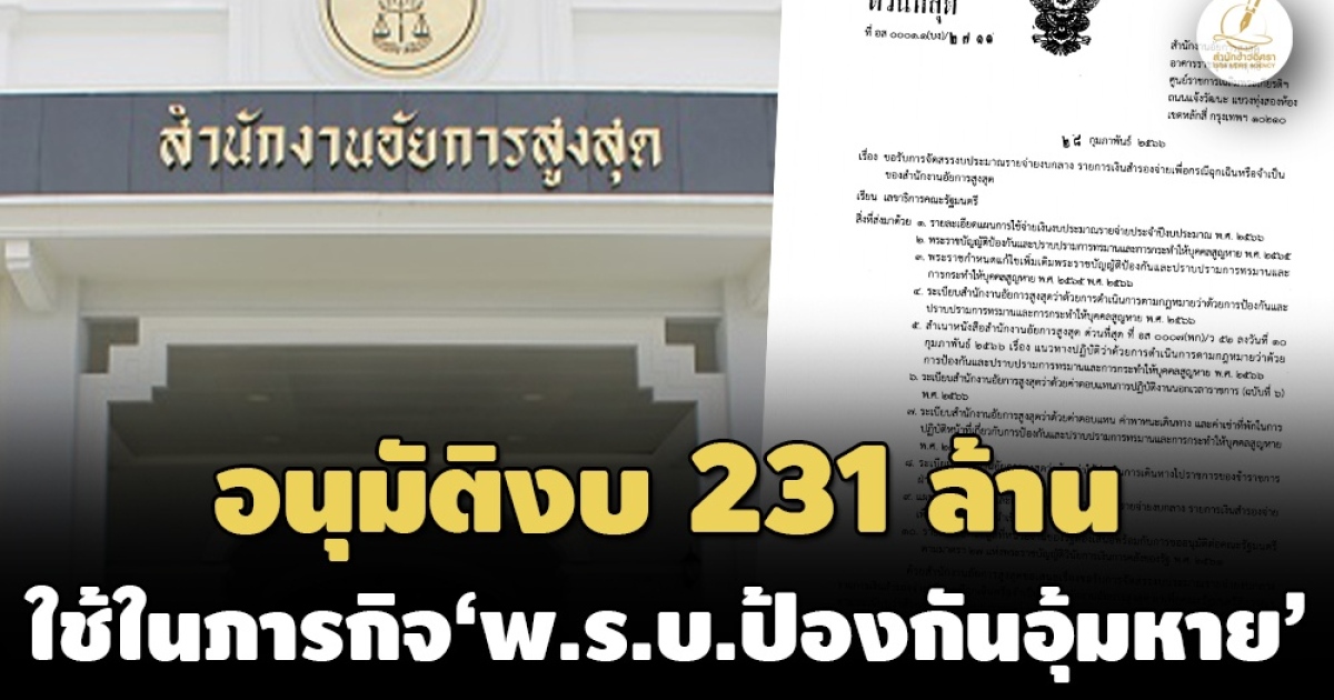 ครม.อนุมัติจัดสรรงบกลางฯ 231 ล้าน ให้ ‘สำนักงานอัยการสูงสุด’ เป็น ‘ค่าเข้าเวร-ค่าเดินทาง' พนักงานฝ่ายอัยการ ในการปฏิบัติงานตาม พ.ร.บ.ป้องกันอุ้มหายฯ’ พร้อมซื้อ ครุภัณฑ์’ ในศูนย์ป้องกันและปราบปรามการทรมานฯ