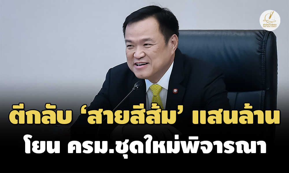 สำนักข่าวอิศรา (www.isranews.org) รายงานว่า วันที่ 14 มีนาคม 2566 นายอนุทิน ชาญวีรกูล รองนากยกรัฐมนตรีและรัฐมนตรีว่าการกระทรวงสาธารณสุข เปิดเผยว่า ที่ประชุมคณะรัฐมนตรี (ครม.) ตีกลับวาระพิจารณาโครงการรถไฟฟ้าสายสีส้มช่วงบางขุนนนท์ - มีนบุรี (สุวินทวงศ์) ระยะทาง 35.9 กม. วงเงิน 142,000 ล้านบาท โดยมีการถกเถียงกันในที่ประชุมกว่า 1 ชม.