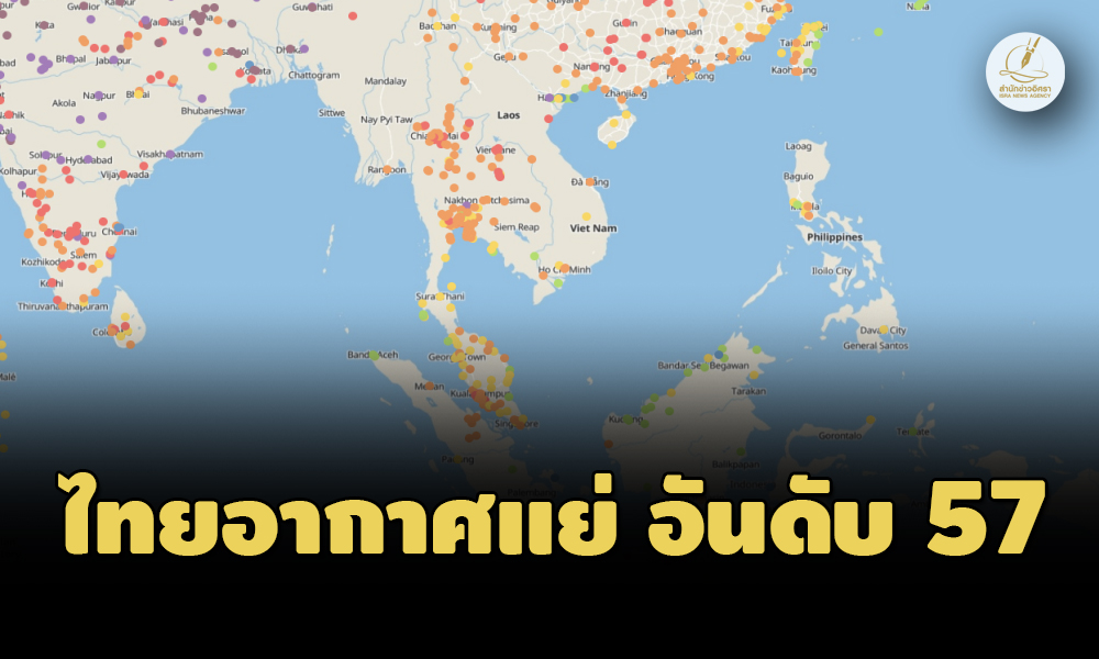 ส่วนประเทศไทยนั้นพบว่ามีค่าอันดับอยู่ที่ 57 โดยพบว่ามีค่ามลพิษทางอากาศเฉลี่ยอยูที่ 18.1 ไมโครกรัมต่อลูกบาศก์เมตร โดยเมืองที่มีค่ามลพิษสูงมากกว่าค่ากำหนด 5-7 เท่ามีอาทิ ต.คลองตาคต จ.ราชบุรี มีค่ามลพิษที่ 29 ไมโครกรัม ต.ปาย จ.แม่ฮ่องสอนมีค่ามลพิษ 27.1 ไมโครกรัม เทศบาลเมืองน่านมีค่ามลพิษ 30.4 ไมโครกรัม เทศบาลเมืองขอนแก่นมีค่ามลพิษ 25.1 ไมโครกรัม เทศบาลปากน้ำ จ.สมุทรปราการมีค่ามลพิษ 30.4 ไมโครกรัม ขณะที่ค่าเฉลี่ยมลพิษในพื้นที่กรุงเทพในปี 2565 พบว่าอยู่ที่ 25-30 ไมโครกรัม