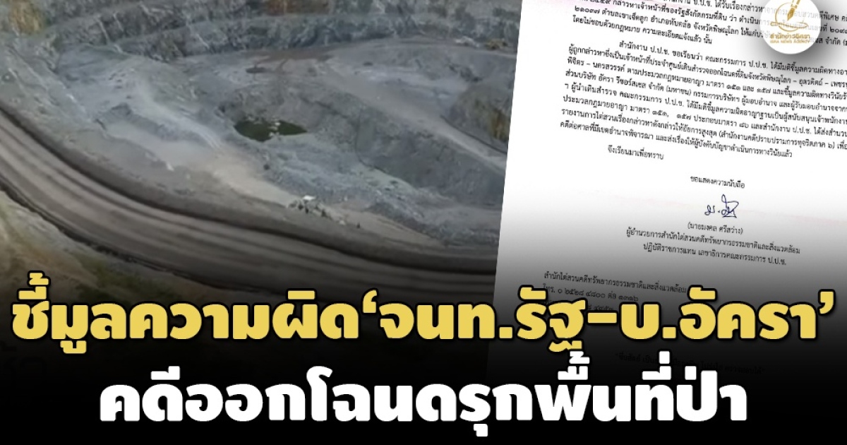 ‘ป.ป.ช.’ มีมติชี้มูลความผิด ‘เจ้าหน้าที่รัฐ-บ.อัคราฯ’ คดีออกโฉนดที่ดิน 2 แปลง บุกรุกพื้นที่ป่า ล่าสุดส่งสำนวนให้ ‘สำนักงานอัยการ’ พิจารณาฟ้องคดีแล้ว