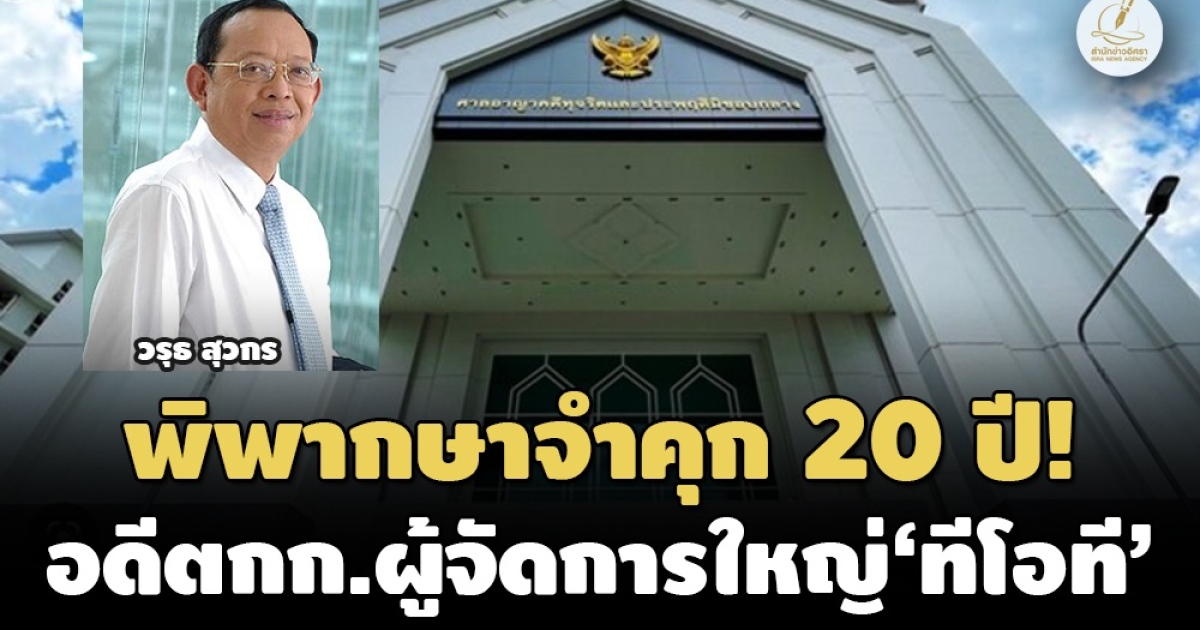 ‘ศาลอาญาคดีทุจริตฯ’ พิพากษาจำคุก อดีตกรรมการผู้จัดการใหญ่ ทีโอที ‘วรุธ สุวกร’ 20 ปี-ชดใช้สินไหมอีก 1.06 พันล้าน คดีอนุมัติจ่ายเงิน 1,485 ล้านบาท ให้ ‘สามารถไอ-โมบาย’ โดยมิชอบ
