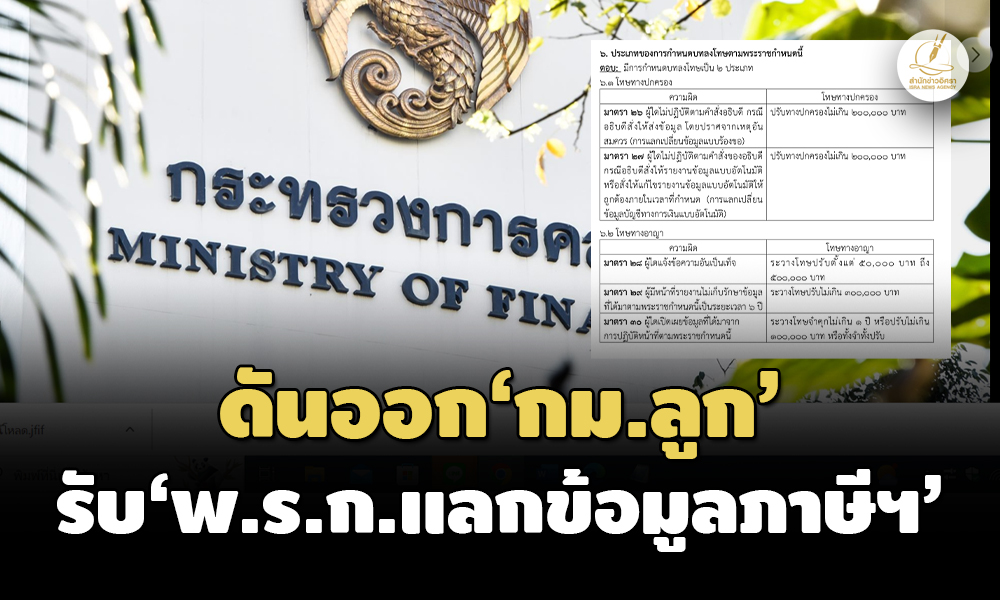 ‘คลัง-สรรพากร’ เผยเตรียมออก ‘กฎหมายลูก’ 3 ฉบับ รองรับ พ.ร.ก.แลกเปลี่ยนข้อมูลภาษีระหว่างประเทศฯ แจง ‘ครม.’ ยัน พ.ร.ก. ไม่ขัดกฎหมาย PDPA-มีมาตรการป้องกันข้อมูลรั่วไหล