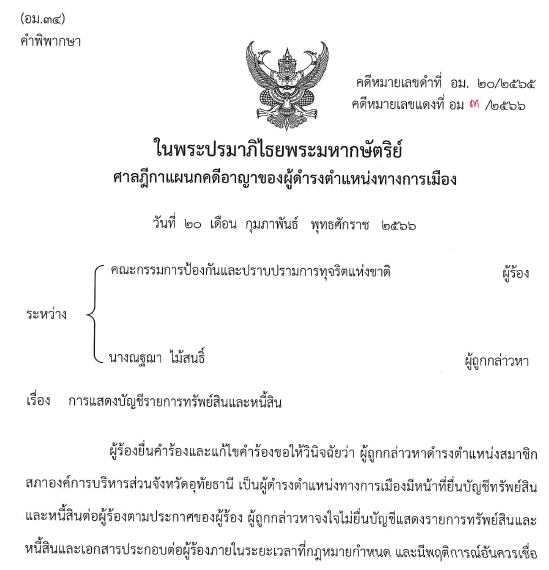 - ใช้‘ลูกน้อง’เป็น‘นอมินี’! คำพิพากษาฉบับเต็มคดีรองนายกเทศฯ ต.ต้นธง ลำพูน ยื่นบัญชีฯเท็จ