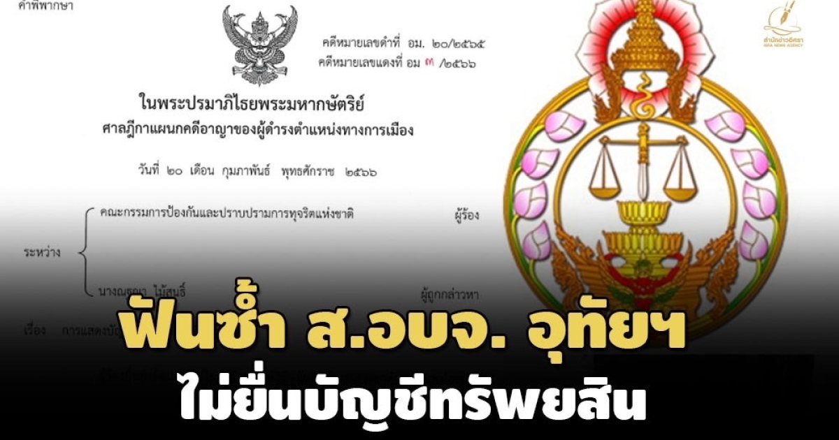 ฟันซ้ำคดีที่สอง! ศาลฎีกาแผนกคดีอาญาของผู้ดํารงตําแหน่งทางการเมือง พิพากษา ‘ณฐฌา ไม้สนธิ์’ ส.อบจ.อุทัยธานี จงใจไม่ยื่นบัญชีทรัพย์สินตนพ้นตำแหน่ง ห้ามดำรงตำแหน่งการเมือง 5 ปี จําคุก 1 เดือน ปรับ 4,000 บาท รอการลงโทษ 1 ปี ก่อนหน้าโดน คุก 1 เดือน ปรับ 4,000 บ. รอลงโทษ ไม่ยื่นฯ ตอนพ้นรองนายก อบต.