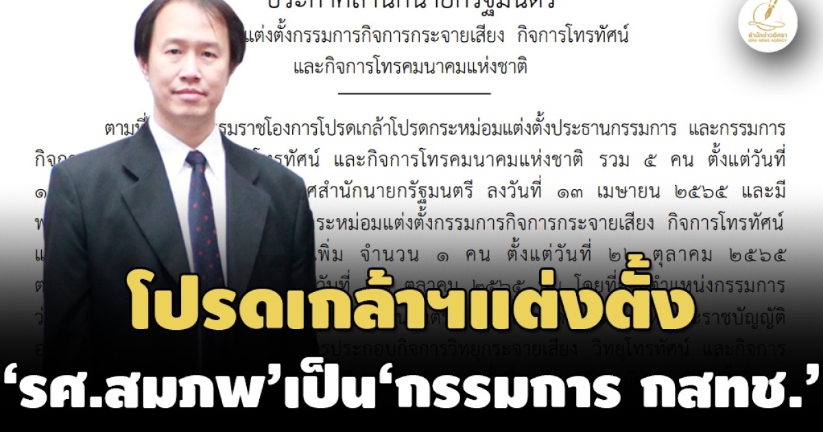 สำหรับประกาศฯดังกล่าว มีเนื้อหาว่า ตามที่ได้มีพระบรมราชโองการโปรดเกล้าโปรดกระหม่อมแต่งตั้งประธานกรรมการ และกรรมการ กิจการกระจายเสียง กิจการโทรทัศน์ และกิจการโทรคมนาคมแห่งชาติ รวม 5 คน ตั้งแต่วันที่ 13 เมษายน 2565ตามประกาศสำนักนายกรัฐมนตรี ลงวันที่ 13 เมษายน 2565 และมีพระบรมราชโองการโปรดเกล้าโปรดกระหม่อมแต่งตั้งกรรมการกิจการกระจายเสียง กิจการโทรทัศน์ และกิจการโทรคมนาคมแห่งชาติเพิ่ม จำนวน 1 คน ตั้งแต่วันที่ 22 ตุลาคม 2565 ตามประกาศสำนักนายกรัฐมนตรี ลงวันที่ 28 ตุลาคม 2565 นั้น