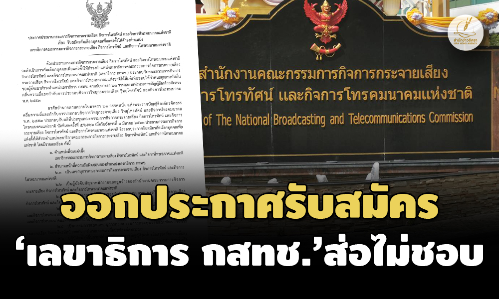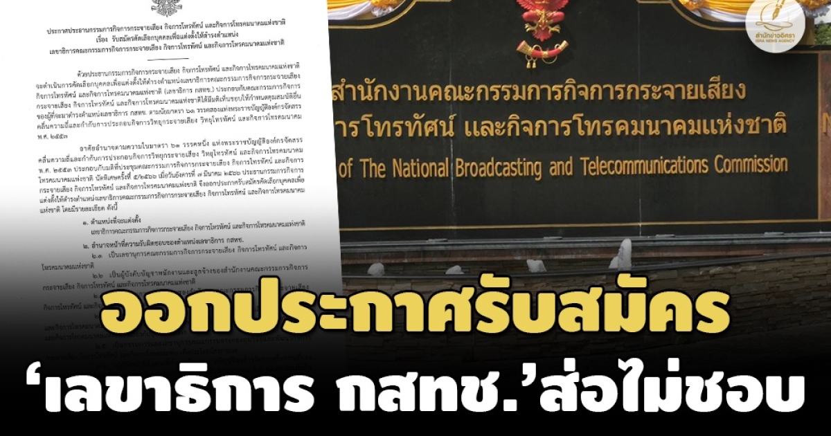 เมินเสียงค้าน! 'กสทช.'เปิดรับสมัคร'เลขาธิการ'คนใหม่ 20 มี.ค.-7 เม.ย.-'ประธาน'คัดเลือกเอง