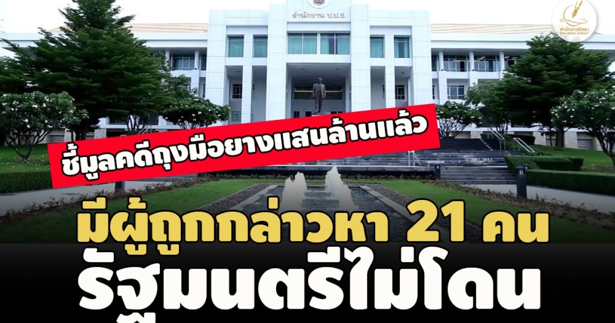 เผยที่ประชุมคณะกรรมการ ป.ป.ช.ชุดใหญ่ มติเอกฉันท์ชี้มูลความผิดคดีจัดซื้อถุงมือยางแสนล้าน อคส.เป็นทางการ มีผู้ถูกกล่าวหาจำนวน 21 ราย - นักการเมืองระดับรัฐมนตรีไม่โดนเหตุขั้นตอนไต่สวนไม่ถูกแจ้งข้อกล่าวหาตั้งแต่ต้น