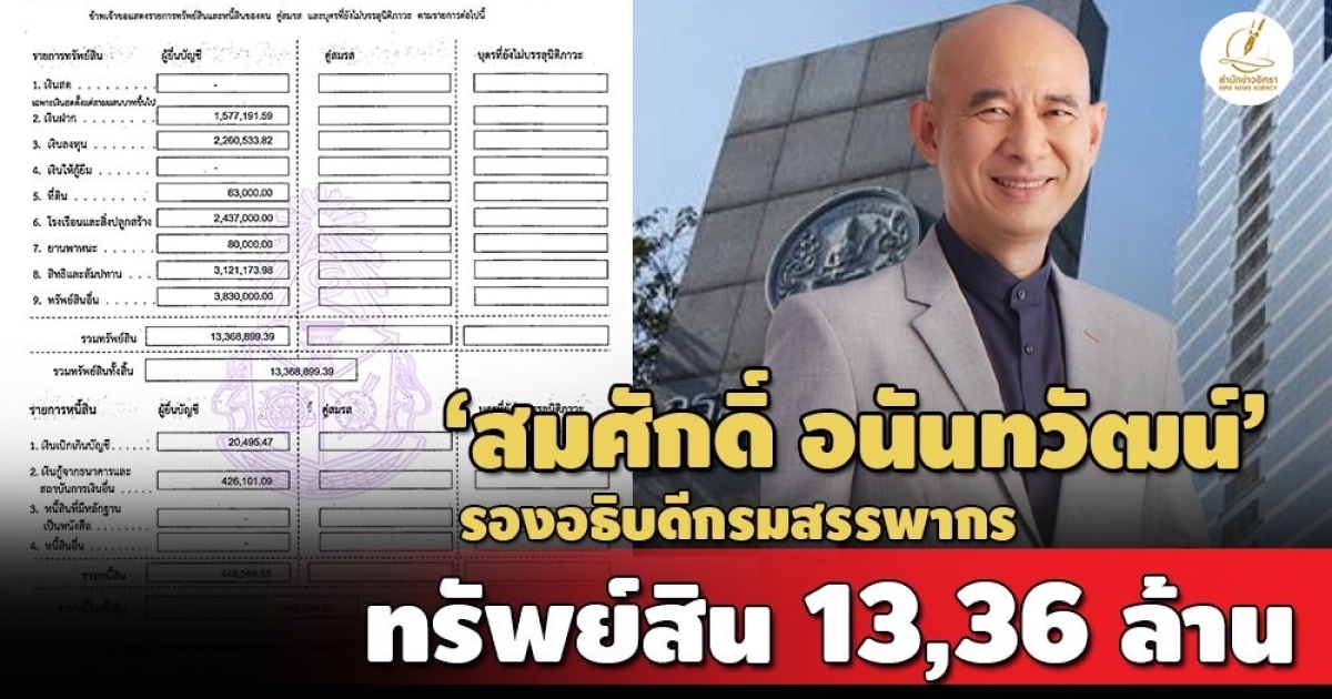 ป.ป.ช. เปิดบัญชีทรัพย์สิน 'สมศักดิ์ อนันทวัฒน์' รองอธิบดีกรมสรรพากร ทรัพย์สิน 13 ล. มีห้องชุดที่ดินแดง กรุงเทพฯ สะสมสร้อยคอทองคำ+พระเลี่ยมทอง 4 เส้น 500,000 บาท-ทองคำแท่งหนัก 10 บาท รายได้ 2.2 ล./ปี