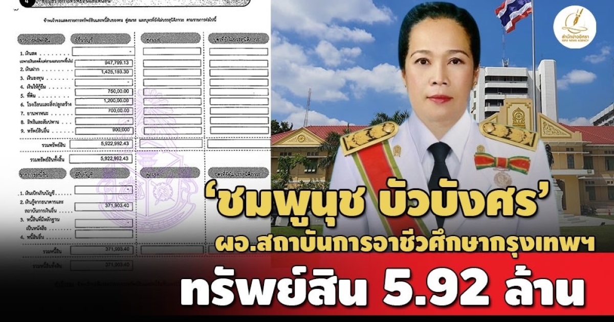 ป.ป.ช. เปิดบัญชีทรัพย์สิน 'ชมพูนุช บัวบังศร' ผอ.สถาบันการอาชีวศึกษากรุงเทพมหานคร ทรัพย์สิน 5.9 ล. สะสมแหวนทอง/เพชร-กำไรทอง รายได้ 1.8 ล./ปี