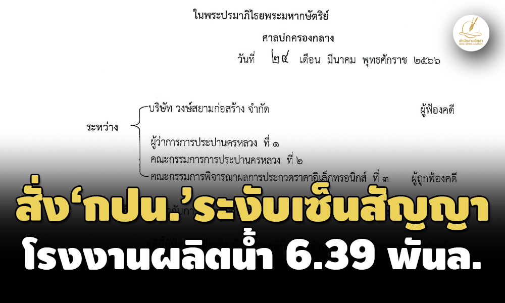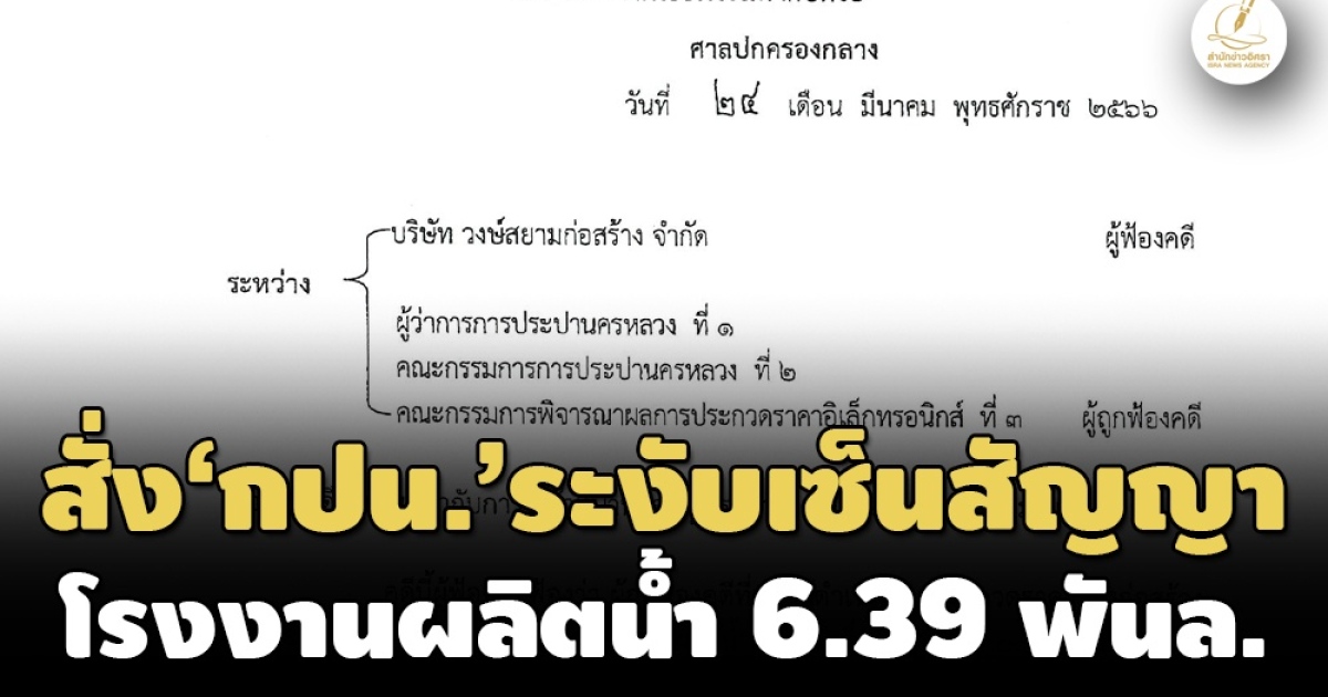 ‘ศาลปกครองกลาง’ มีคำสั่งทุเลาการบังคับ ‘ประกาศ กปน.’ ให้ ITA Consortium เป็นผู้ชนะประมูลก่อสร้างงานขยายโรงงานผลิตน้ำมหาสวัสดิ์ฯ 6.39 พันล้าน ส่งผลให้ ‘กปน.’ ต้องระงับการเซ็นสัญญาจ้างฯ ทันที