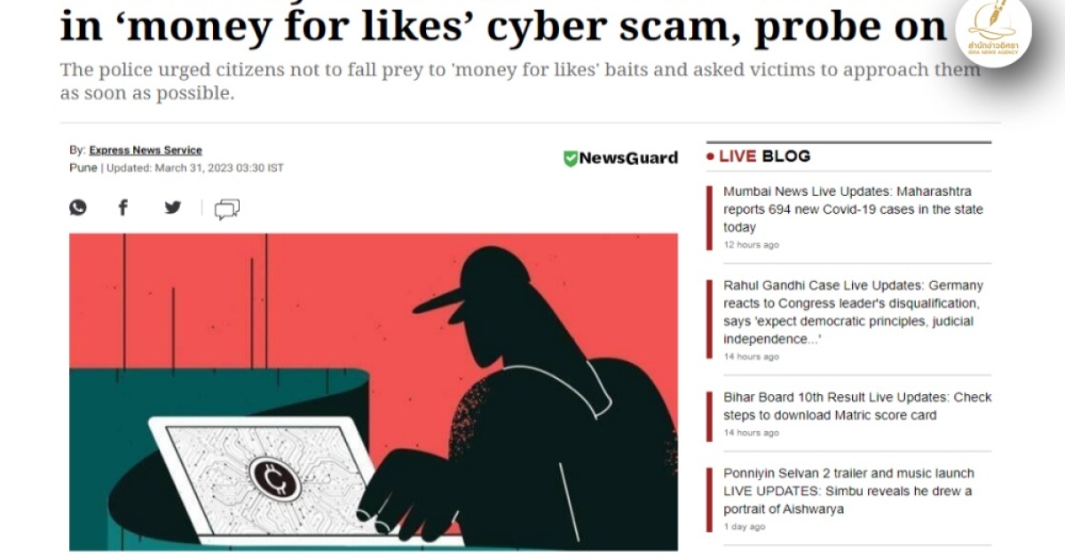 สำนักข่าวอิศรา (www.isranews.org) รายงานข่าวต่างประเทศที่เกี่ยวกับประเทศไทยว่า เจ้าหน้าที่ตำรวจไซเบอร์ในเมืองปูเณ รัฐมหาราษฏระ ประเทศอินเดียได้แถลงข่าวว่าได้มีการดำเนินการสืบสวนหลังจากที่พบว่ามีกรณีที่ทหารผ่านศึกกองทัพบกนายหนึ่งตกเป็นเหยื่อของขบวนการมิจฉาชีพเรียกเงินแลกยอดไลค์ ส่งผลทำให้อดีตทหารรายนี้ต้องเสียเงินไปถึง 11 ล้านรูปี (4,564,050 บาท)