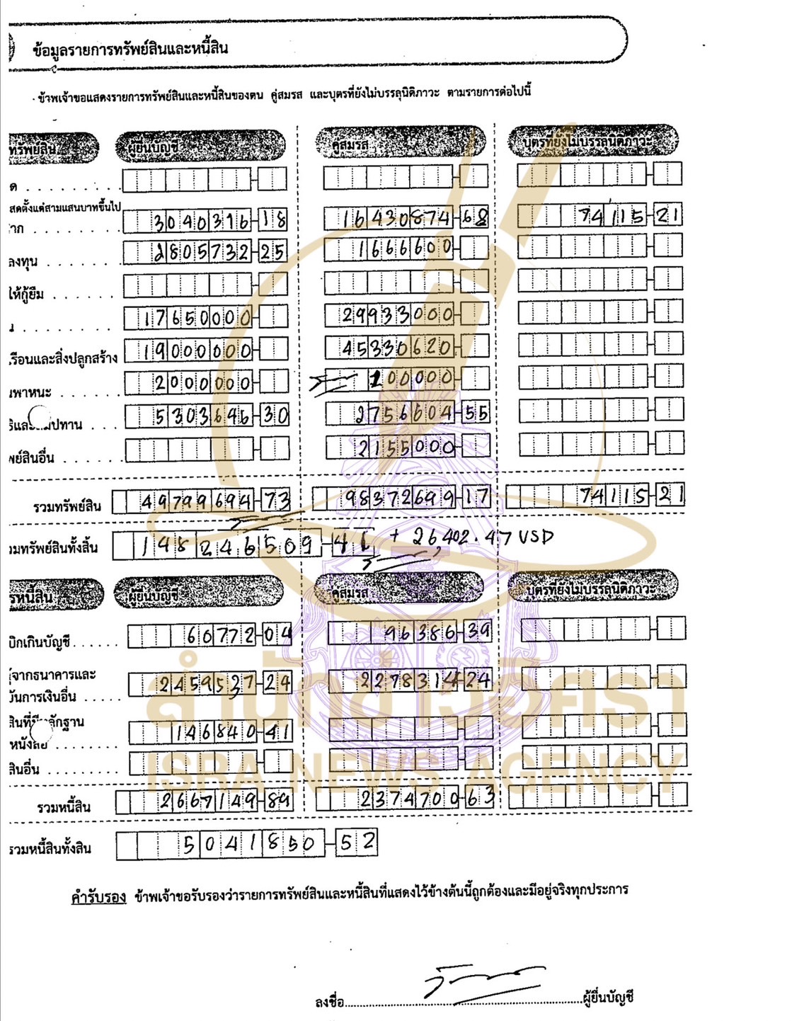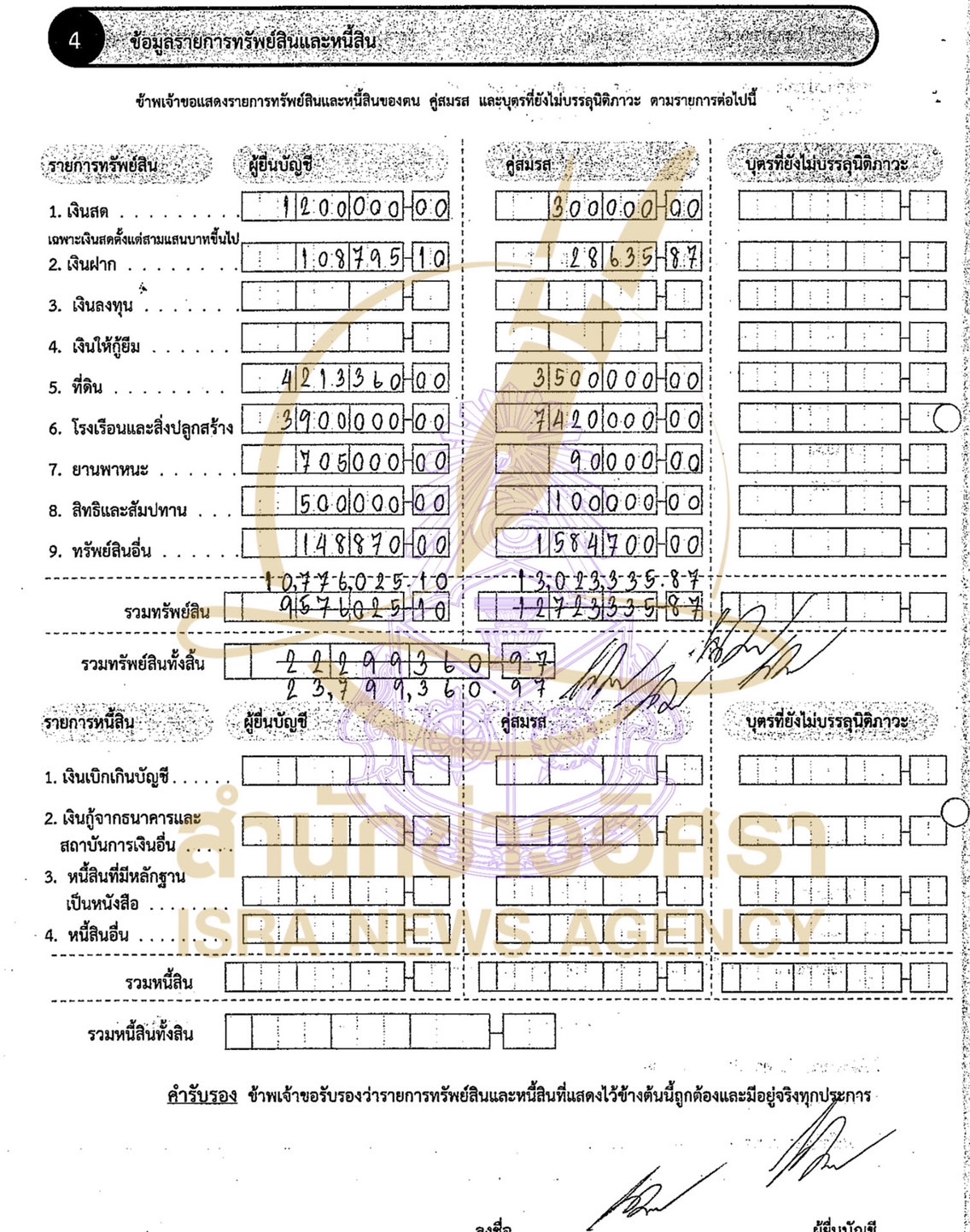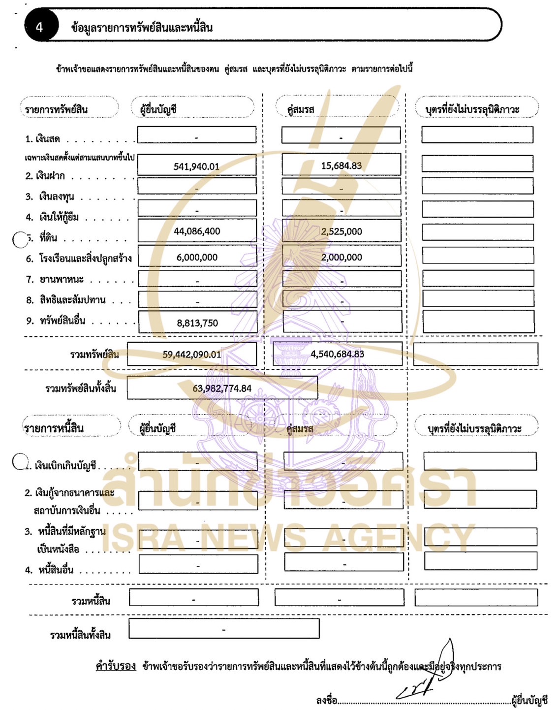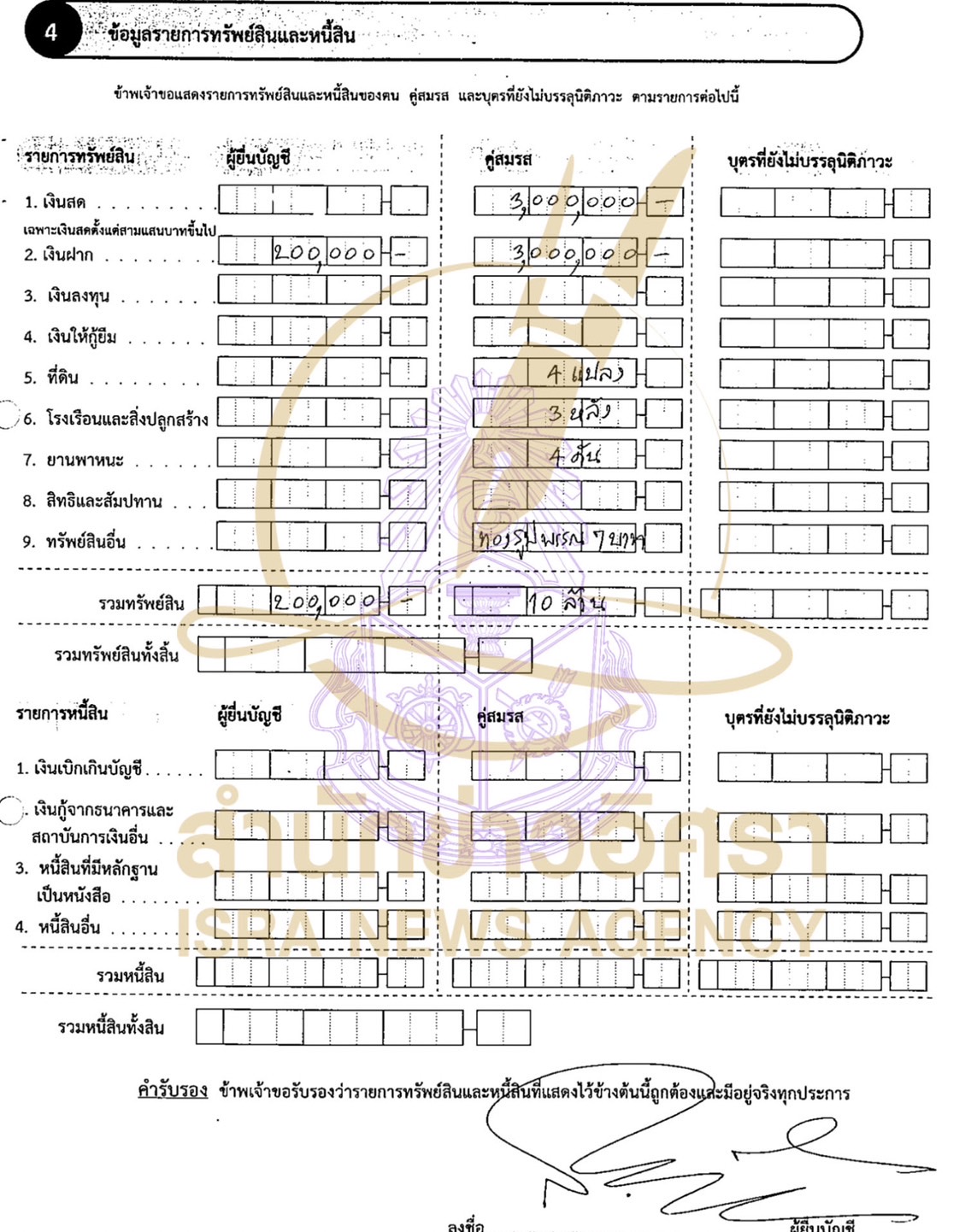 ส่วนบุตรที่ยังไม่บรรลุนิติภาวะ แจ้งมีทรัพย์สิน 74,115 บาท