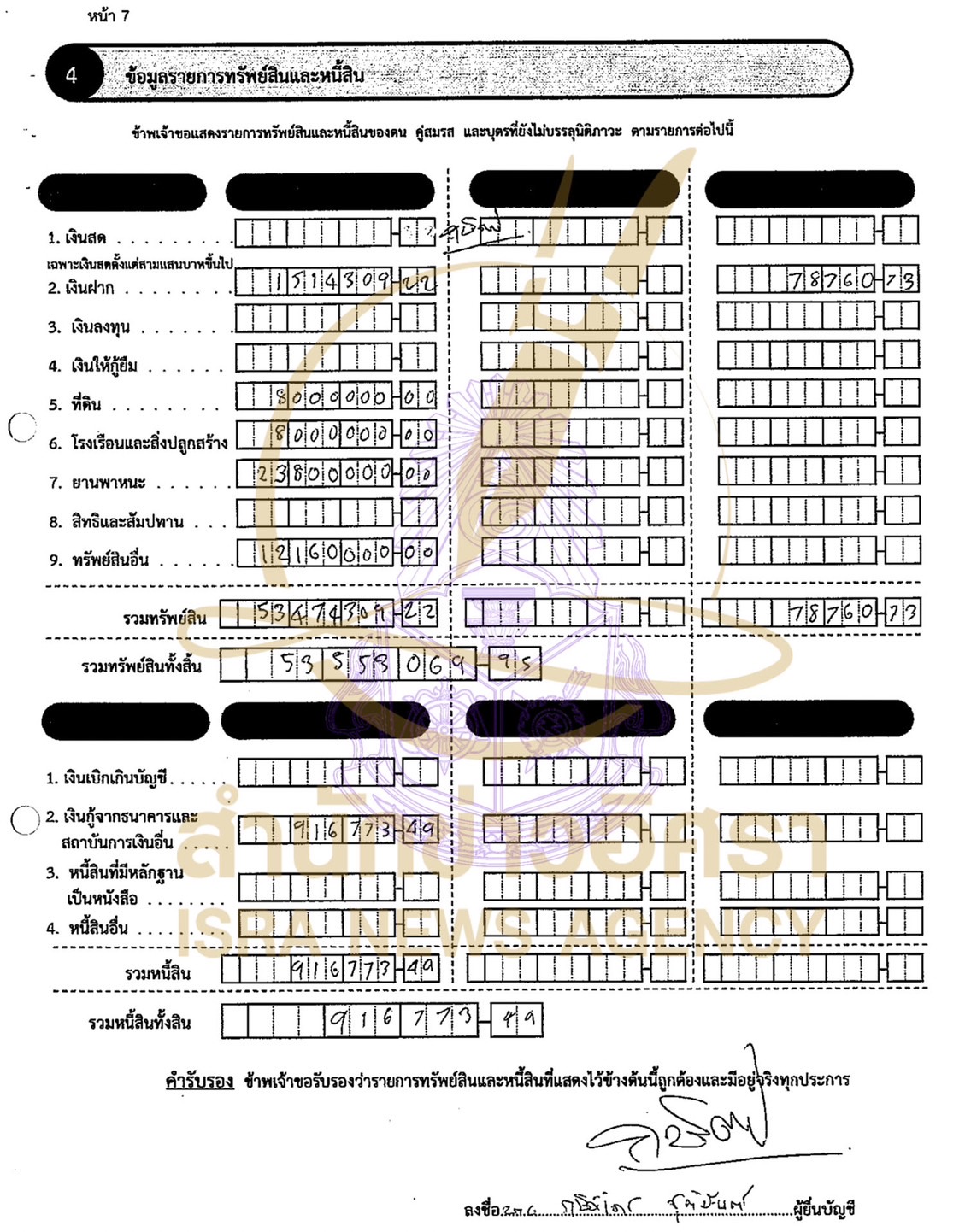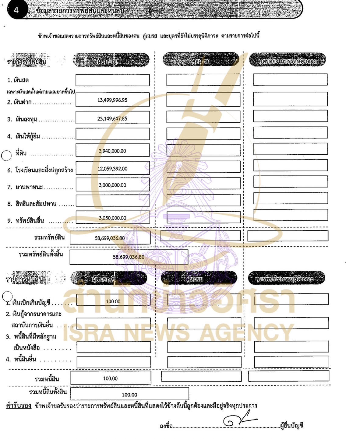 ส่วนบุตรที่ยังไม่บรรลุนิติภาวะ แจ้งมีทรัพย์สินทั้งสิ้น 78,760 บาท เป็นเงินฝากทั้งหมด