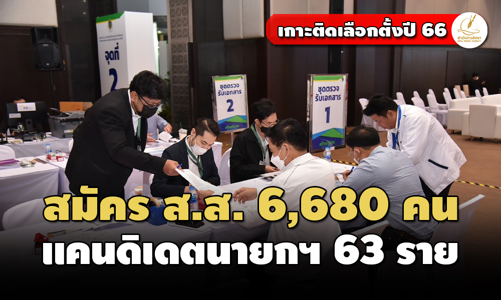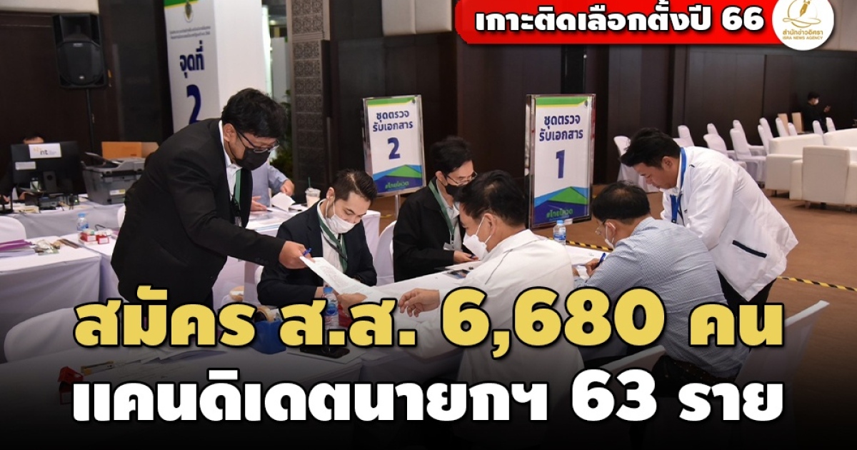 ปิดรับสมัคร ส.ส.-เสนอชื่อแคนดิเดตนายกฯ กกต.สรุปตัวเลขสมัคร ส.ส.รวม 6,680 คน เป็นแบ่งเขต 4,781 คน และบัญชีรายชื่อ 1,899 คน ส่วนแคนดิเดจนายกฯเสนอชื่อ 63 คนจาก 43 พรรคการเมือง
