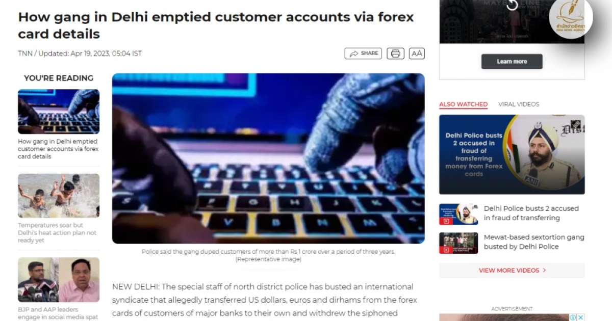 หน่วยพิเศษ ตำรวจอินเดียรวบขบวนการฉ้อโกงบัตรฟอเร็กซ์ พบมีอดีตลูกจ้างธนาคารมีเอี่ยวด้วย เผยใช้วิธีการแกล้งทำตัวเป็นลูกค้าโทรไปหาธนาคารแจ้งปัญหา ก่อนเปลี่ยนข้อมูลเบอร์โทร-อีเมล หลังจากนั้นถอนเงินจากหลายที่รวมถึงจากกรุงเทพ ด้านผู้ต้องหาเผยมีคนไทยให้การช่วยเหลือด้วย