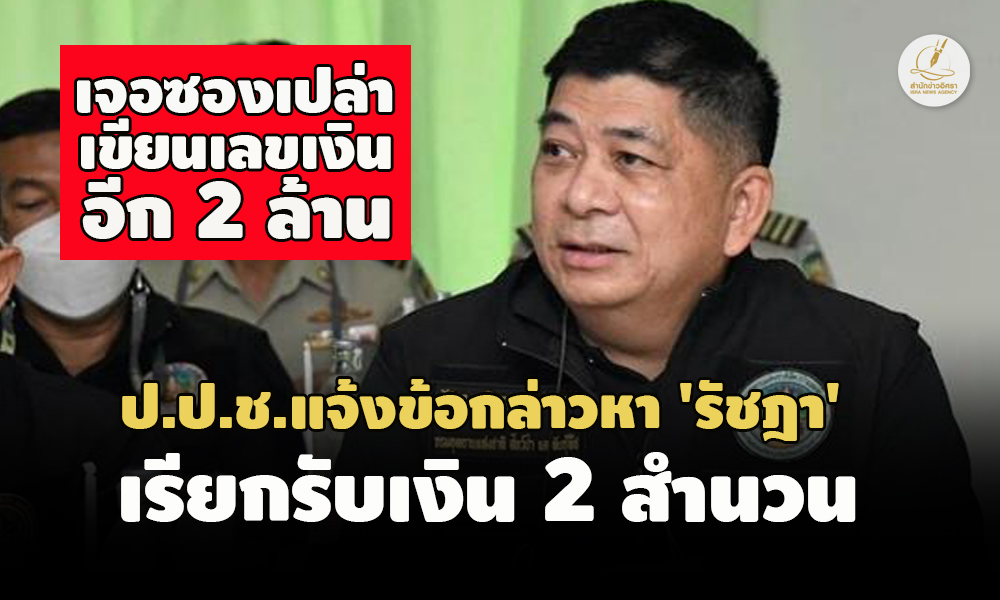 2. กรณีมีเหตุอันควรสงสัยว่าผู้ถูกร้องกระทำความผิดฐานทุจริตต่อหน้าที่หรือกระทำความผิดต่อตำแหน่งหน้าที่ราชการ กรณีกองบังคับการป้องกันปราบปรามการทุจริตและประพฤติมิชอบได้ตรวจสอบขยายผลจากการจับกุม นายรัชฎา เมื่อวันที่ 27 ธันวาคม 2565 ซึ่งพบทรัพย์สินตามบัญชีการตรวจยึด จำนวน 21 รายการ รวมเป็นเงินสดจำนวนประมาณ 4,843,300 บาท และซองเปล่าที่ระบุมูลค่าเงินสดอีกจำนวนประมาณ 2,010,000 บาท