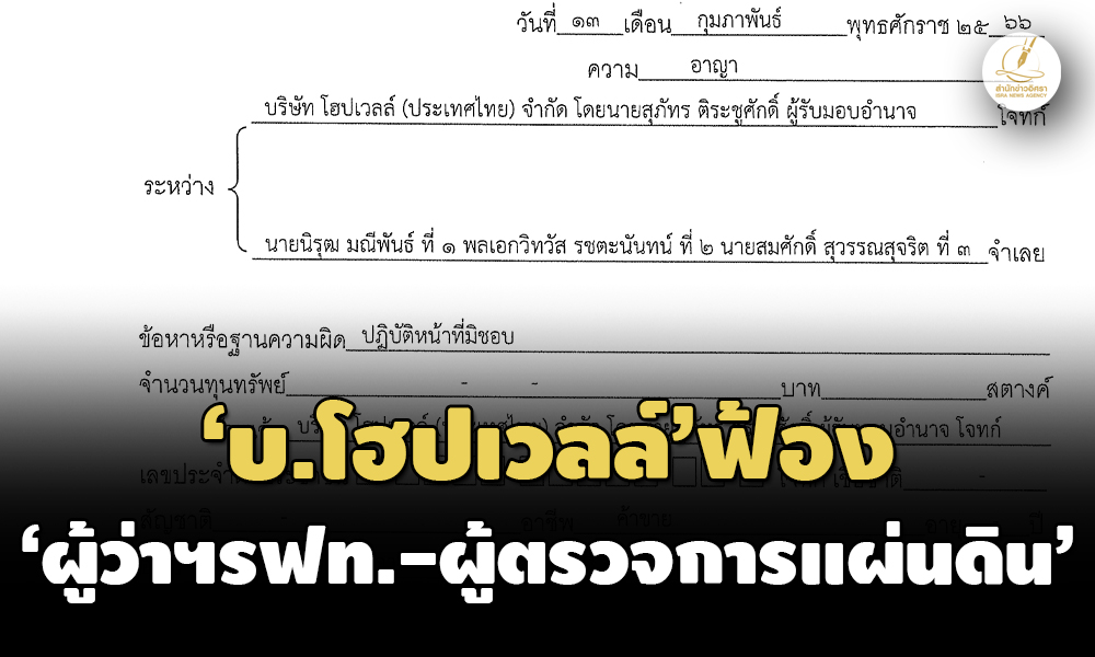 อนึ่ง ก่อนฟ้องคดีนี้ โจทก์มิได้แจ้งความร้องทุกข์ต่อพนักงานสอบสวนเพราะประสงค์จะดำเนินคดีเอง และมีความเชื่อมั่นต่อกระบวนการพิจารณาของศาลอาญาคดีทุจริตและประพฤติมิชอบกลางตามหลักนิติธรรมอย่างยิ่งควรมิควรแล้วแต่จะโปรด” คำฟ้องของบริษัท โฮปเวลล์ (ประเทศไทย) จำกัด ต่อศาลอาญาคดีทุจริตและประพฤติมิชอบกลาง เมื่อวันที่ 13 ก.พ.2566 ระบุ
