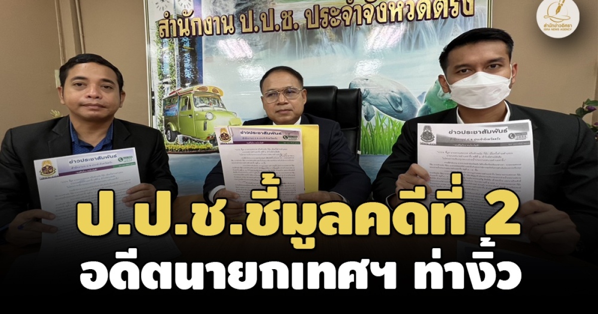 ป.ป.ช.ตรัง แถลงมติชี้มูล 'ธรรมศทรรศ หรือทักษนัย กี่สุ้น' อดีตนายกเทศมนตรีตำบลท่างิ้ว คดีที่ 2 มีส่วนได้เสียโครงการปรับปรุงระบบจ่ายน้ำประปาเทศบาลตำบลท่างิ้ว สั่งการให้ลูกจ้างดำเนินการแทนคู่สัญญา- จ่อโดนคดีที่ 3 ต่อด้วย