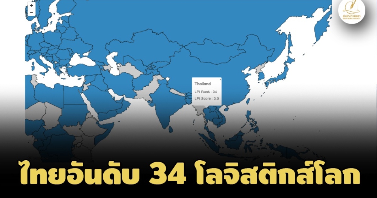 สำนักข่าวอิศรา (ww.isranews.org) รายงานข่าวเกี่ยวกับการจัดอันดับในต่างประเทศที่เกี่ยวข้องกับประเทศไทยว่าธนาคารโลกหรือว่า World Bank ได้มีการจัดอันทำดัชนีขีดความสามารถในด้านโลจิสติกส์ใน 139 ประเทศทั่วโลกประจำปี 2566 พบว่าประเทศไทยได้อันดับที่ 34 โดยมีคะแนนทั้งสิ้น 3.5คะแนน