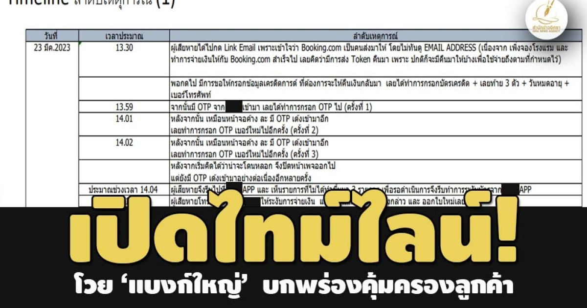 เปิดไทม์ไลน์ละเอียด กรณีเหยื่อมิจฉาชีพโวยแบงก์ใหญ่บกพร่องคุ้มครองลูกค้า หลังถูกหลอกดูดเงินนับแสน เผยข้อความ SMS ระบุชัดจะตั้งพักยอดค่าใช้จ่ายให้ แถมแจ้งไปเอาใบแจ้งความสถานีตำรวจ ก่อนกลับลำบอกช่วยอะไรไม่ได้ ยืนยันยอดเรียกเก็บเงิน ให้ลูกค้ารับผิดชอบเหตุกรอก OTP เอง
