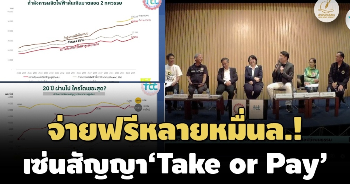 วันเดียวกัน สภาองค์กรของผู้บริโภค เผยแพร่บทความเรื่อง ‘ค่าไฟ “ไม่ใช้ก็ต้องจ่าย” (Take or Pay) จุดด่างในบิลค่าไฟฟ้า’ โดยมีเนื้อหาว่า ทุกๆ เดือนของการชำระบิลค่าไฟฟ้าที่ประชาชนต้องจ่าย มีเงินจำนวนหนึ่งที่ถูกแบ่งออกไปจ่ายให้กับโรงงานไฟฟ้าเอกชนบางแห่งที่ไม่ได้ผลิตไฟฟ้าแต่ผู้ใช้ไฟฟ้าต้องจ่ายเงินที่เรียกว่า “ค่าความพร้อมจ่ายไฟฟ้า” (Availability Payment) ภายใต้ลักษณะสัญญาแบบ Take or Pay